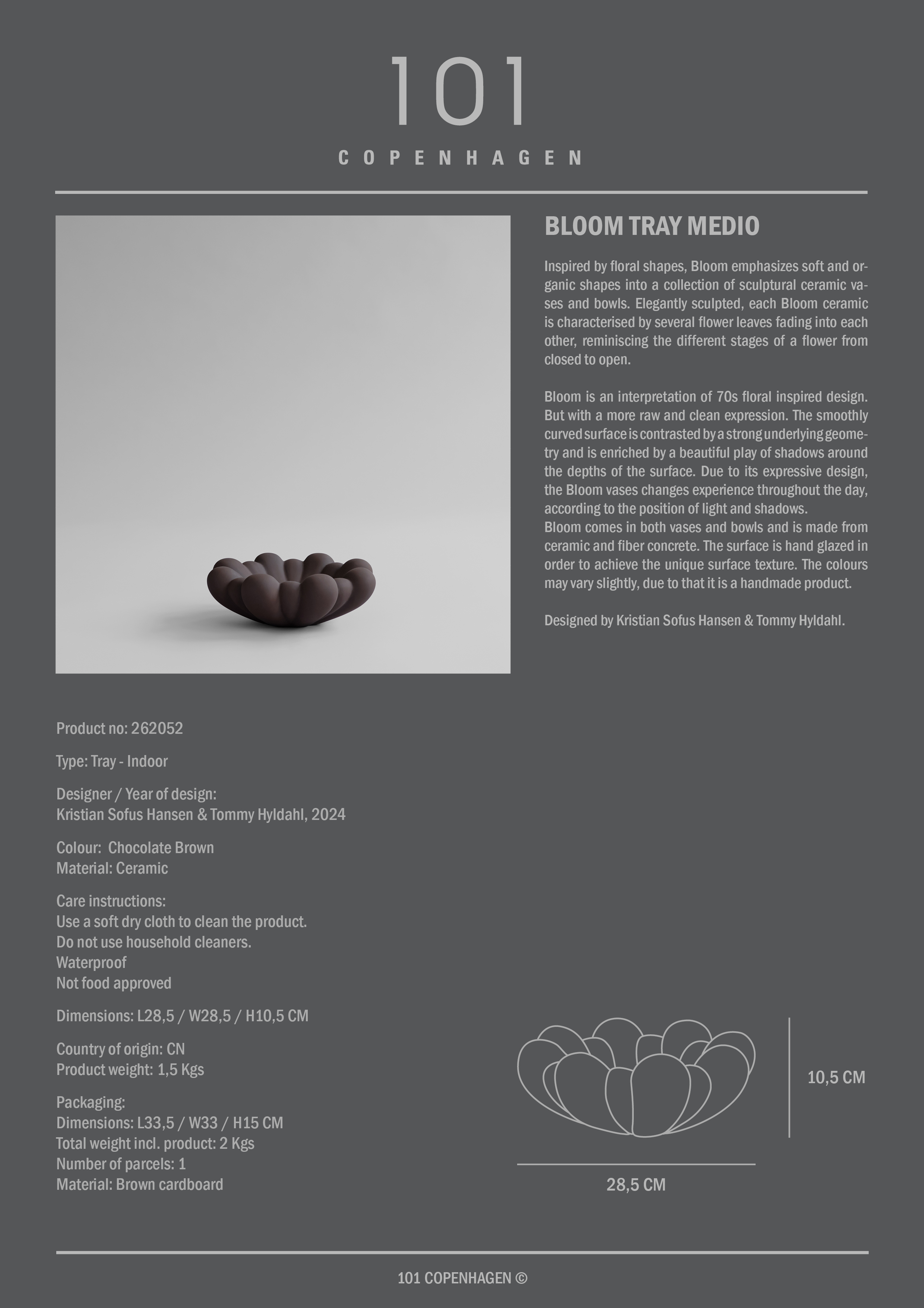 101 Copenhagen Bloom -tarjotin, Keskikokoinen, Suklaanruskea