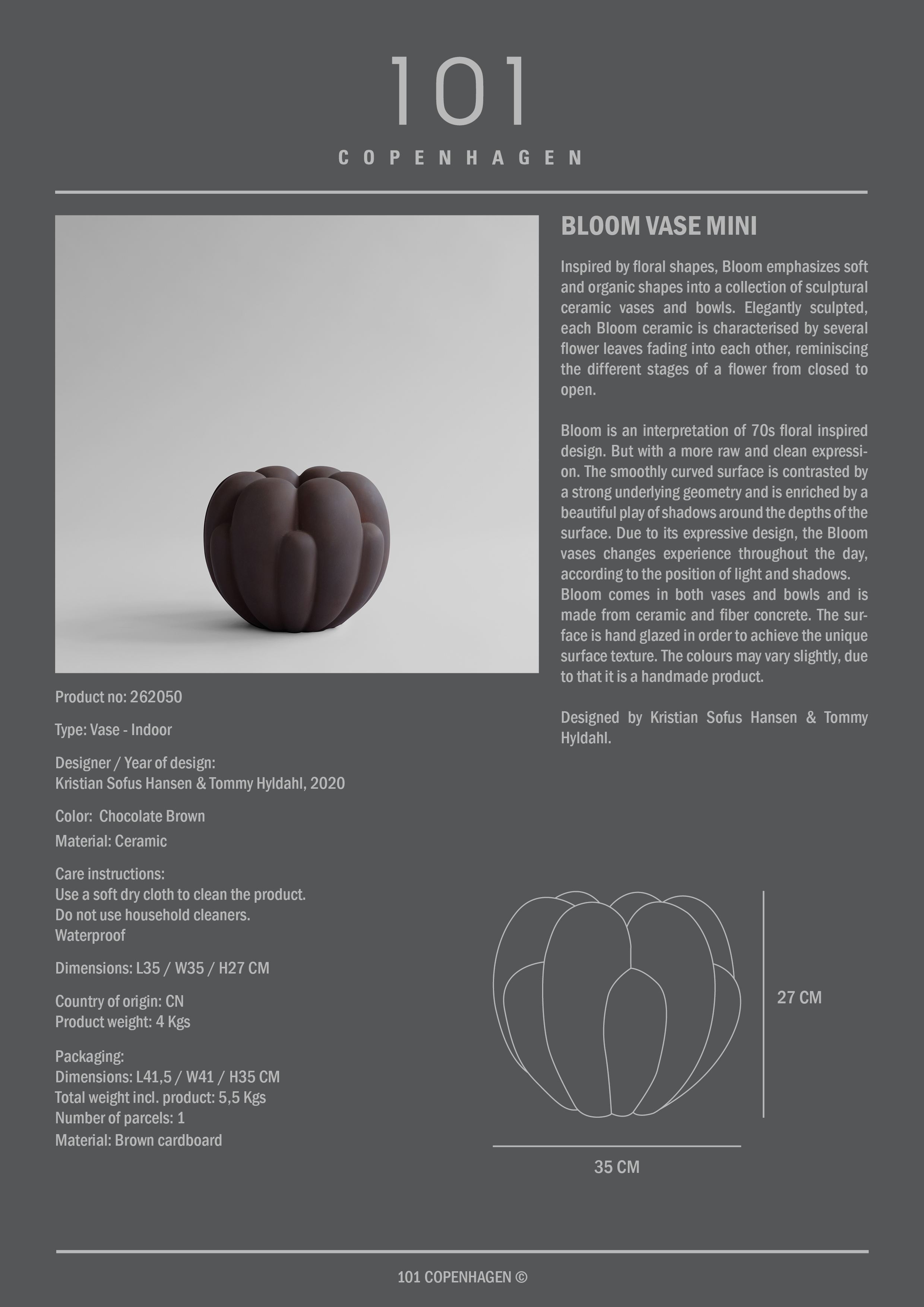 101 Copenhagen Bloom -maljakko, Mini, Suklaanruskea