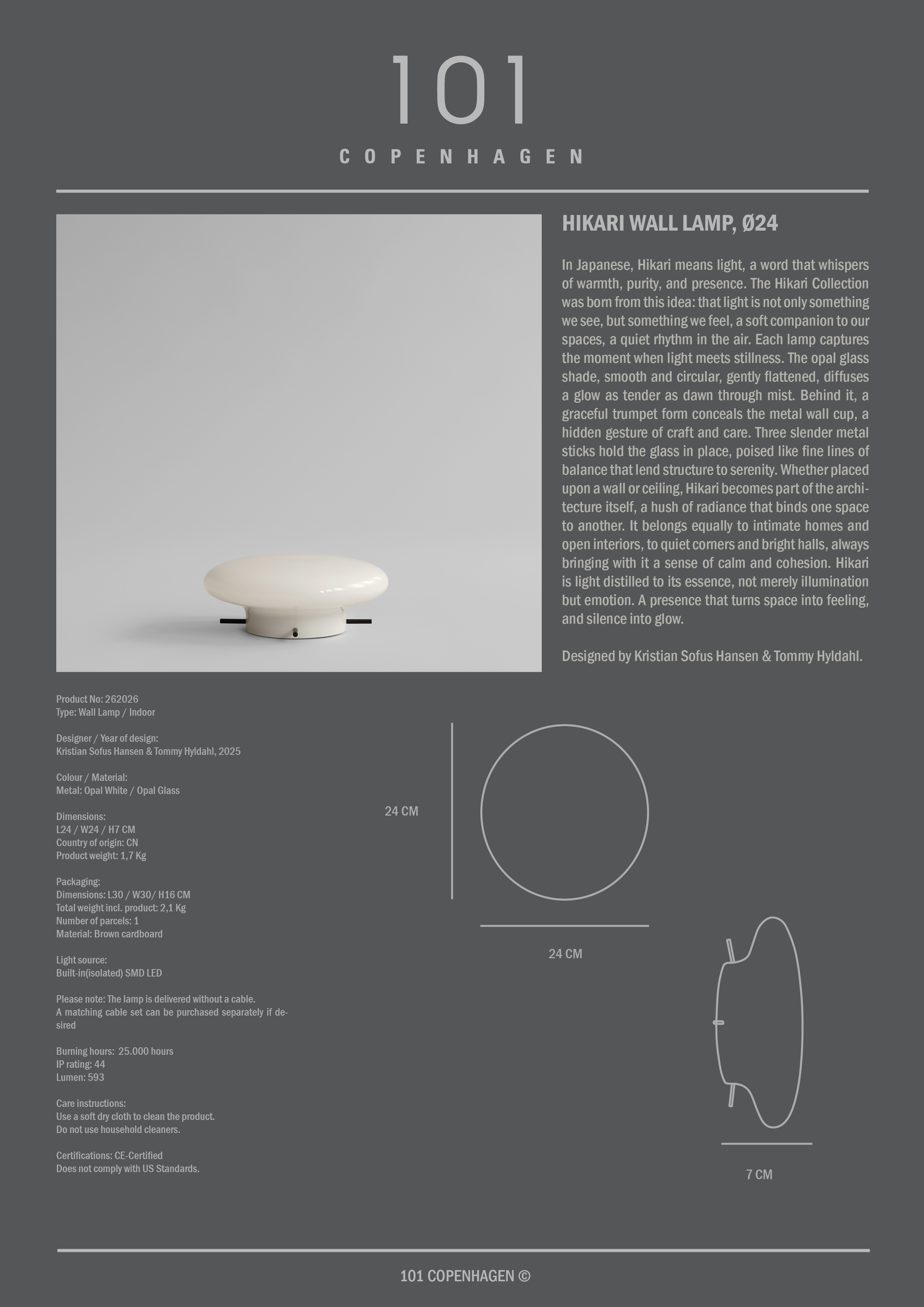 101 Copenhagen Hikari -seinävalaisin Ø24 Opaalinvalkoinen 249 € Live price match Ready for delivery in 30–40 days Add to basketExplore more product information Free shipping on orders above 150 € Excluding large furniture and other selected products 365-day return policy Authorised distributor
