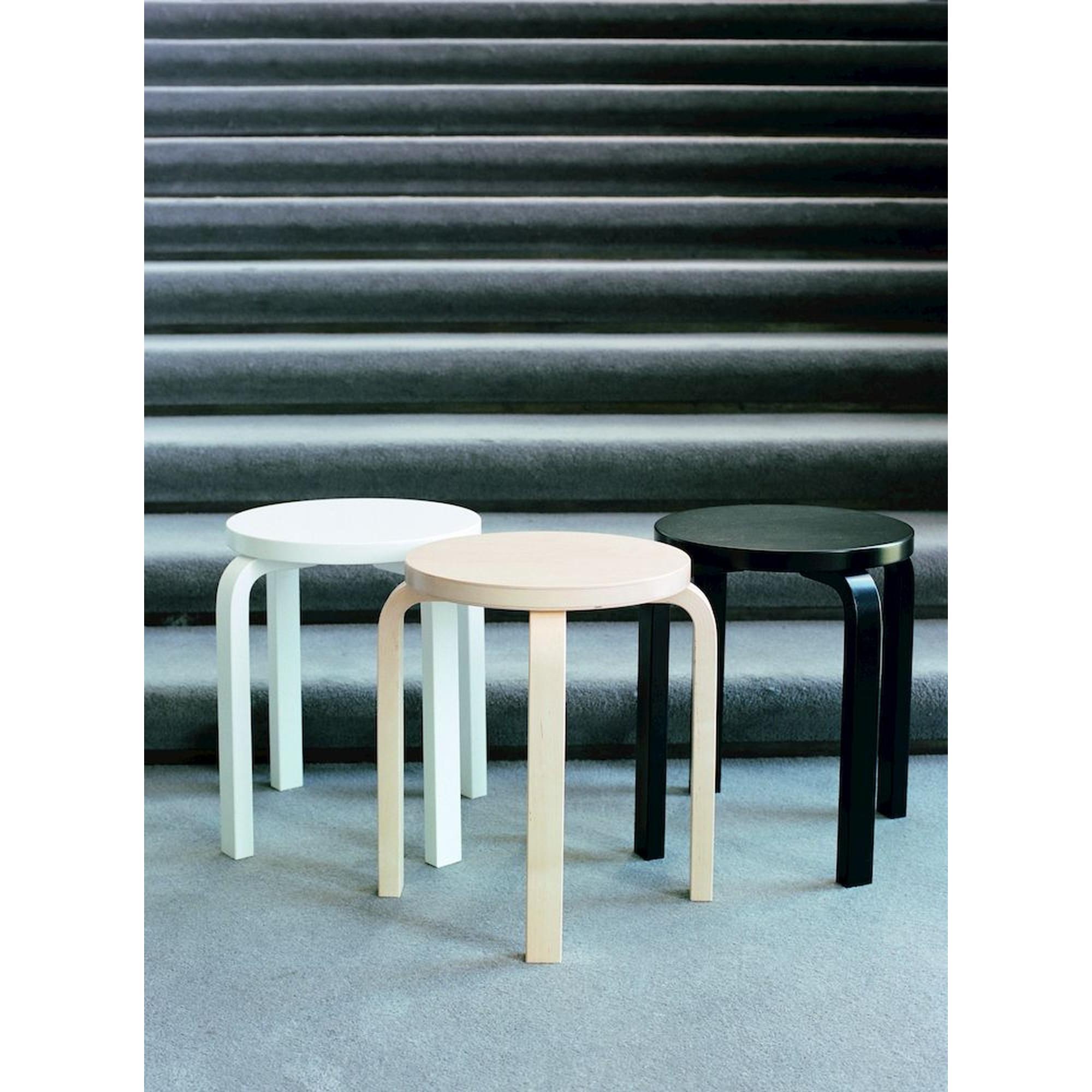 artek E60 jakkara, musta, laminoitu koivu