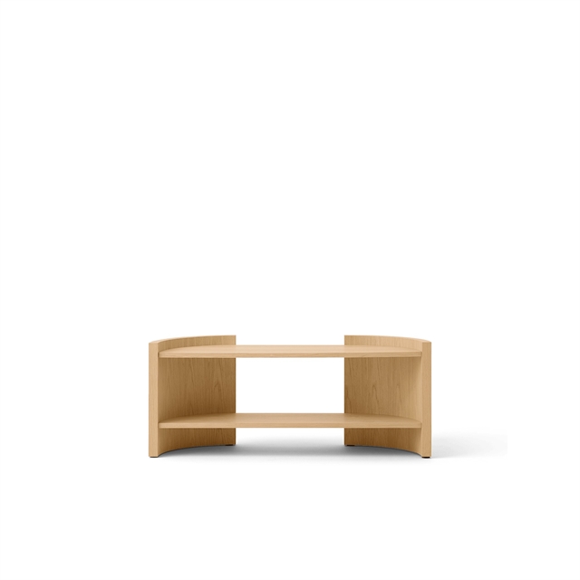 Matalampi koko antaa kirjahyllylle joustavamman roolin sisustuksessa, jossa sitä voidaan käyttää olohuoneessa, makuuhuoneessa tai työhuoneessa. Crescent-sarjan tyypillinen muotokieli säilytetään, mutta ilme on kompaktimpi ja kevyempi. Kirjahylly tarjoaa toiminnallista säilytystilaa ja visuaalista rakennetta, joka tukee koko huonetta ottamatta sitä kokonaan haltuunsa. Huonekalu, joka lisää järjestystä ja rytmiä huomaamattomasti ja tasapainoisesti.
