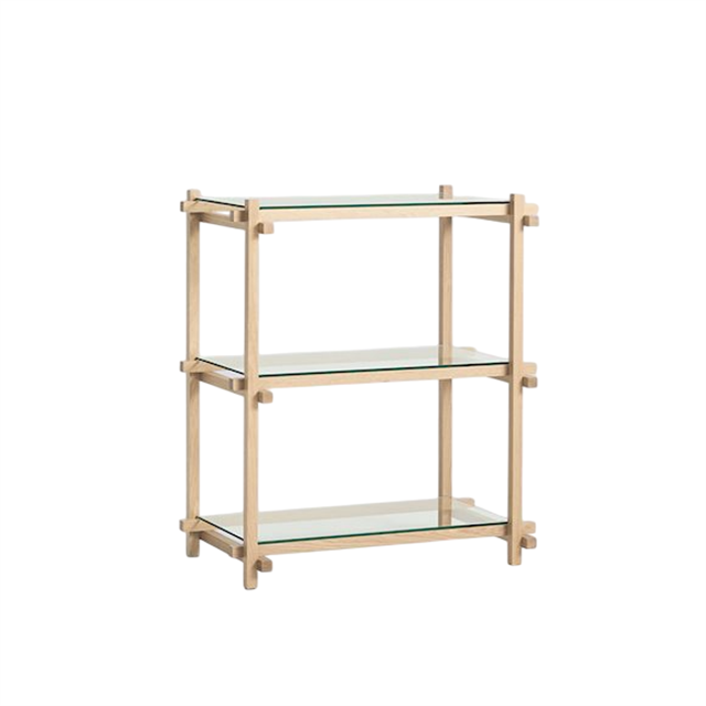 HAY Woody Shelving 2.0 -kirjahylly pieni, mantelinharmaa/lasi