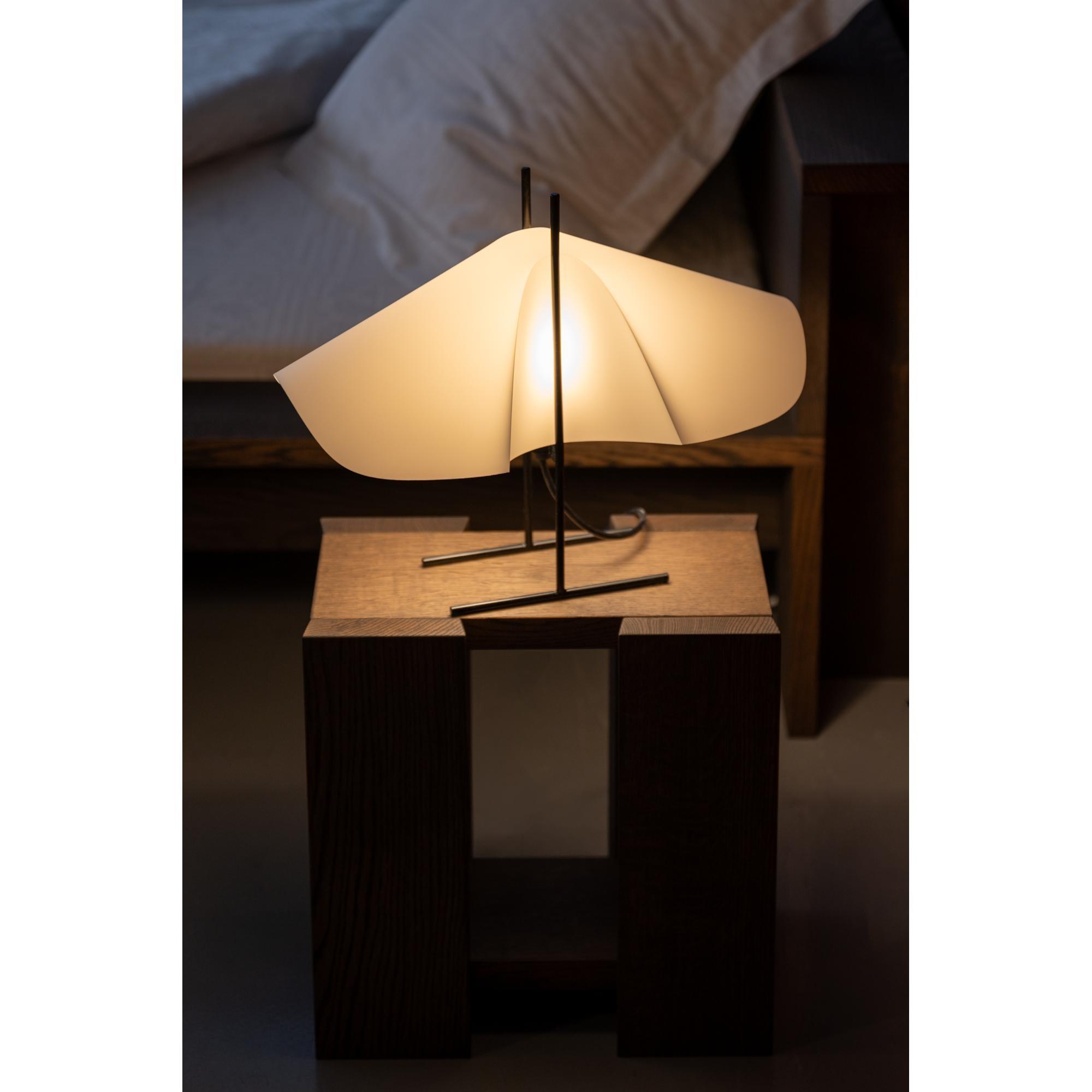 CHO-lamput ovat tulos tutkimuksen muodoista, jotka syntyvät, kun painat soikeaa paperia. Arkki, jossa on kaksi kaarevaa puristusta, jotka puristetaan huolellisesti ohueksi metallikehykseksi. Kuten siipi, joka kantaa itsensä kireällä kahden pilonin välissä, se avautuu runolliseksi valkokankaaksi, joka kutsuu luovaan tulkintaan ja muuttaa ilmaisua katselukulmasta riippuen. "Cho" tarkoittaa japaniksi perhosta, joka heijastaa muotoilijoiden suunnittelemaa muotoa. Lampunvarjostimen keveys kohtaa teräspohjan lujuuden, jossa valkoinen kohtaa mustan harmonisessa kontrastissa.