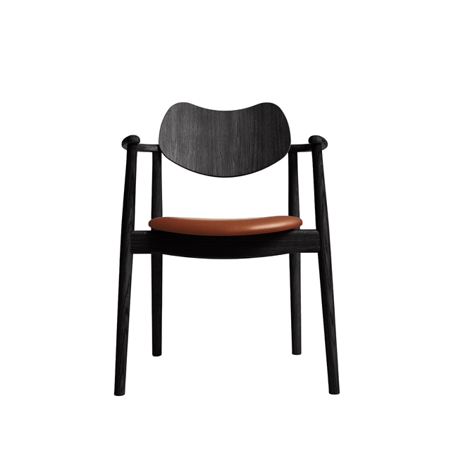 Ro Collection Regatta -ruokatuoli, Verhoiltu Istuin, Musta Lakattu tammi/Calvados-nahka