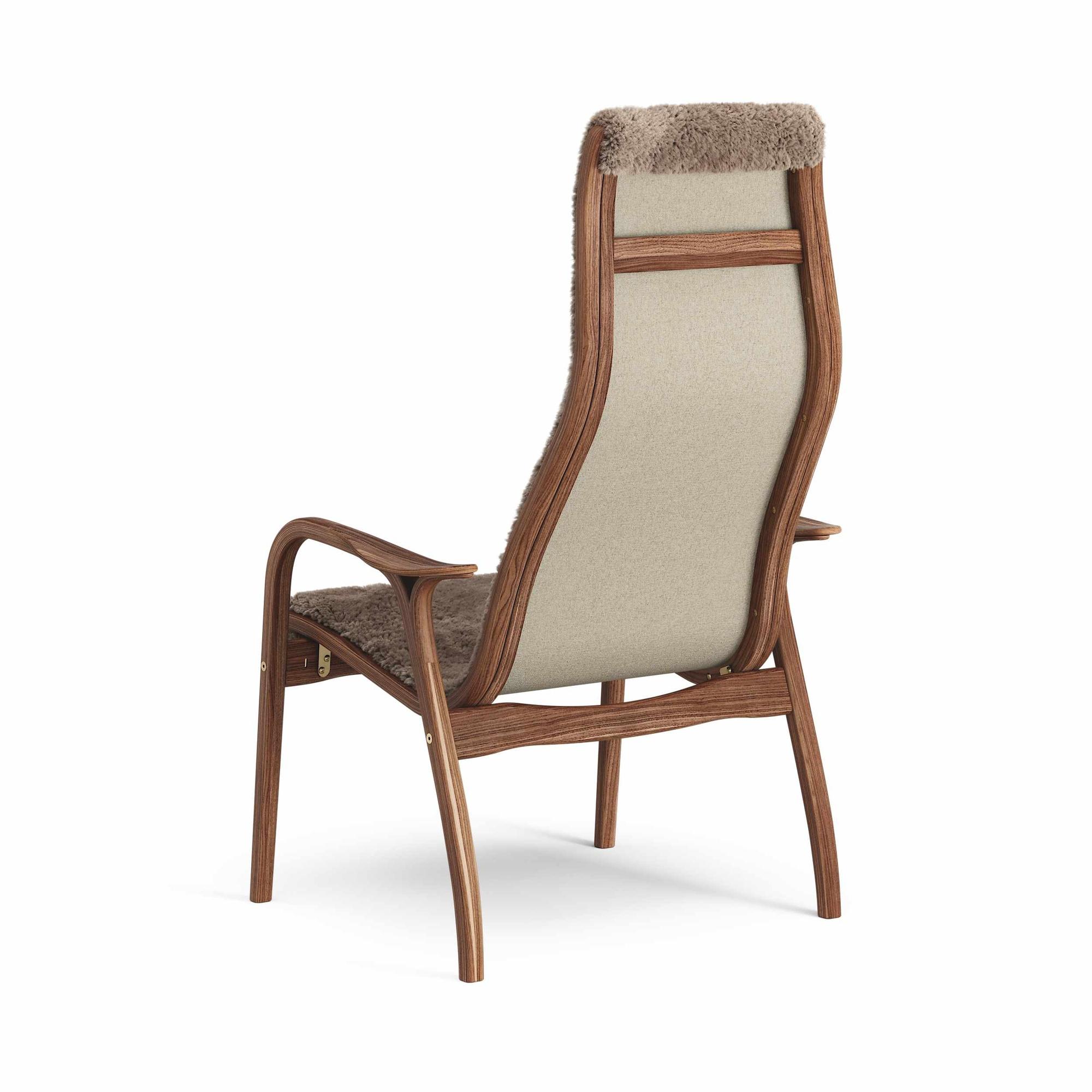 Swedese Lamino -nojatuoli, korkealakattu pähkinäpuu/sahara/lammasnahka