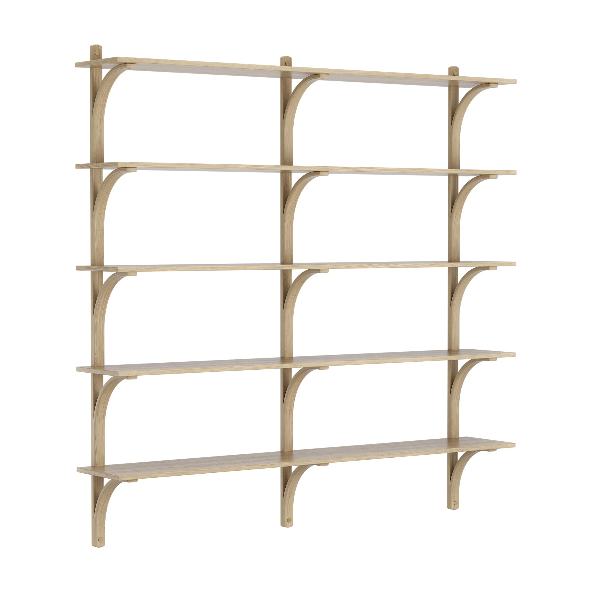 Swedese Levi -hylly 180 cm, 5 hyllyä, messinki/luonnonlakka tammi