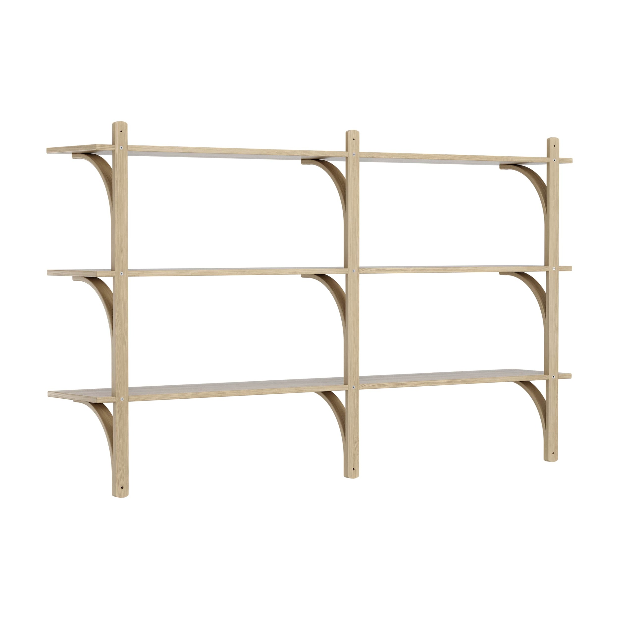 Swedese Levi -hylly 180 cm, 3 hyllyä, messinki/luonnonlakka tammi